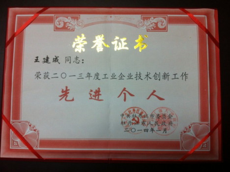 為樹立榜樣,市委市政府決定,授予一批工業(yè)立市先進單位,其中,牡丹江金盟電器有限公司獲此殊榮。同時,王建成總經(jīng)理被授予“技術(shù)創(chuàng)新先進個人”稱號。